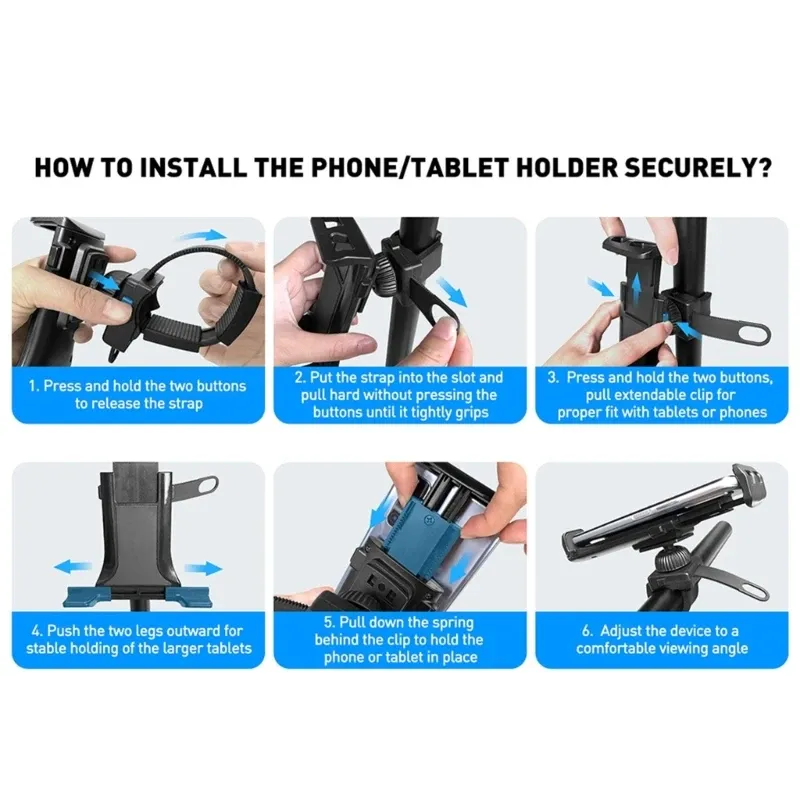 Take your workouts to the next level with this phone holder. Whether you're cycling, running on a treadmill, or using other fitness equipment, this phone holder allows you to easily view your favorite workout videos, follow training programs, or to music, making your exercise more enjoyable and productive.